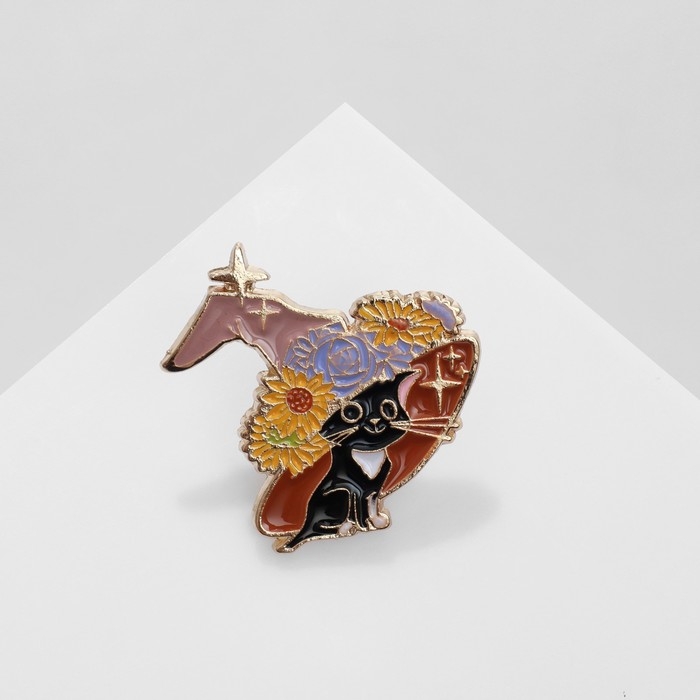 Значок «Котёнок в шляпке» цветочки, цветной в золоте