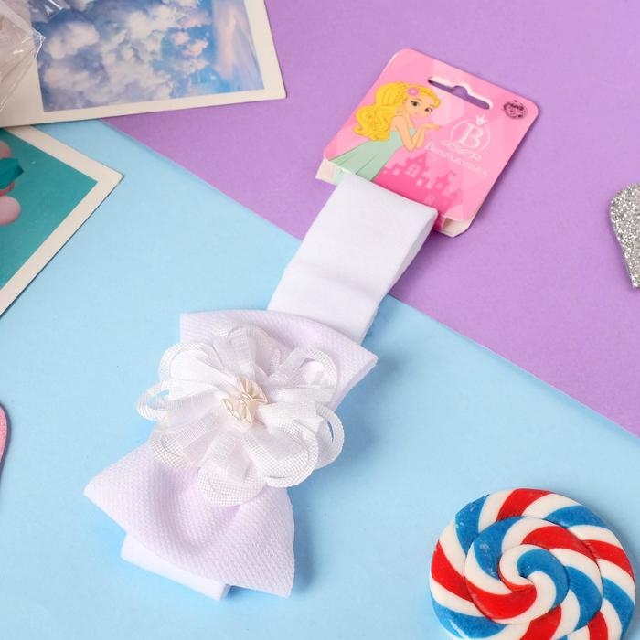 Повязка для волос "Модница" бантик в цветочке, 10,5х6,5 см, белый