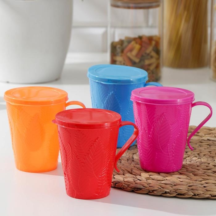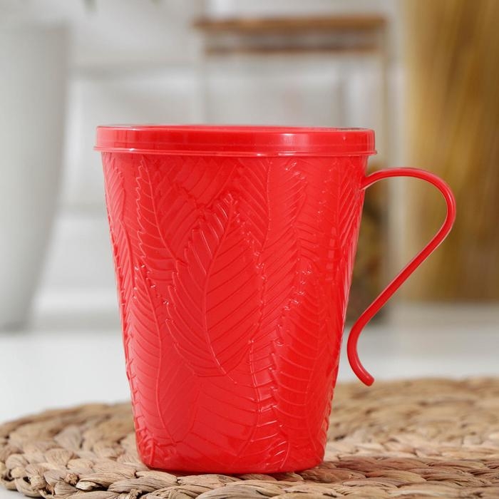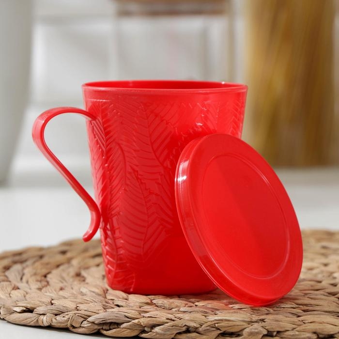 Кружка с крышкой «Листья», 400 мл, 11,5×8,5×11 см, цвет МИКС