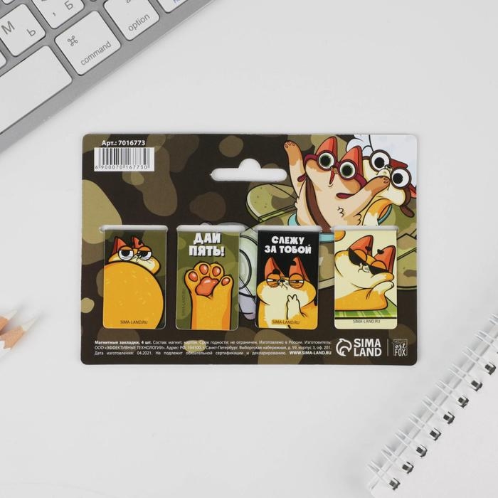 Набор магнитных закладок для книг Calligrata 6 штук, "Кошки", МИКС