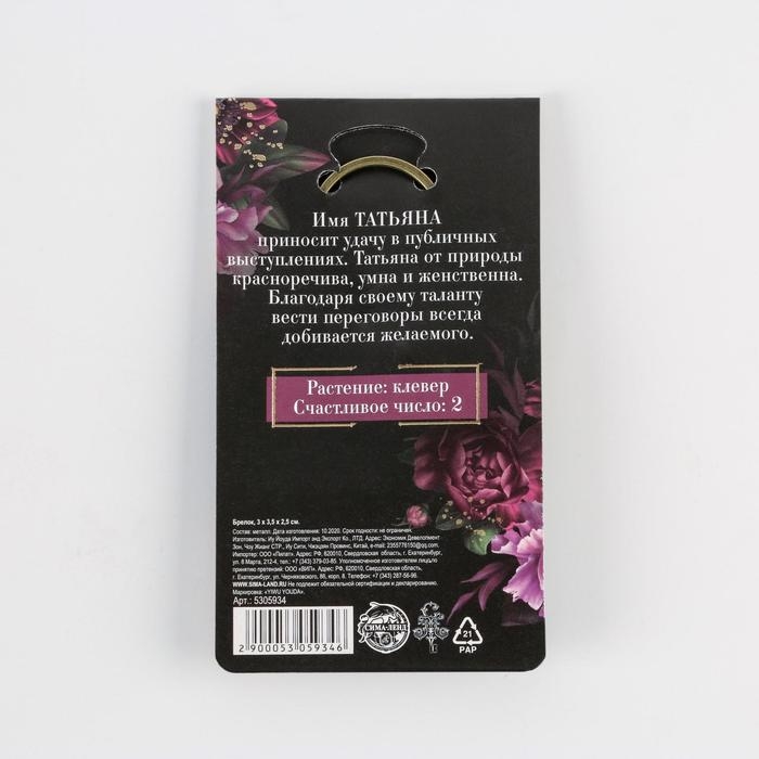 Всем известно, что самое приятное слово для любого человека — это его имя! С таким подарком, как брелок для ключей , металлический, талисман «Татьяна» латунь, 3 х 3,5 х 2,5 см, Вы точно не прогадаете!