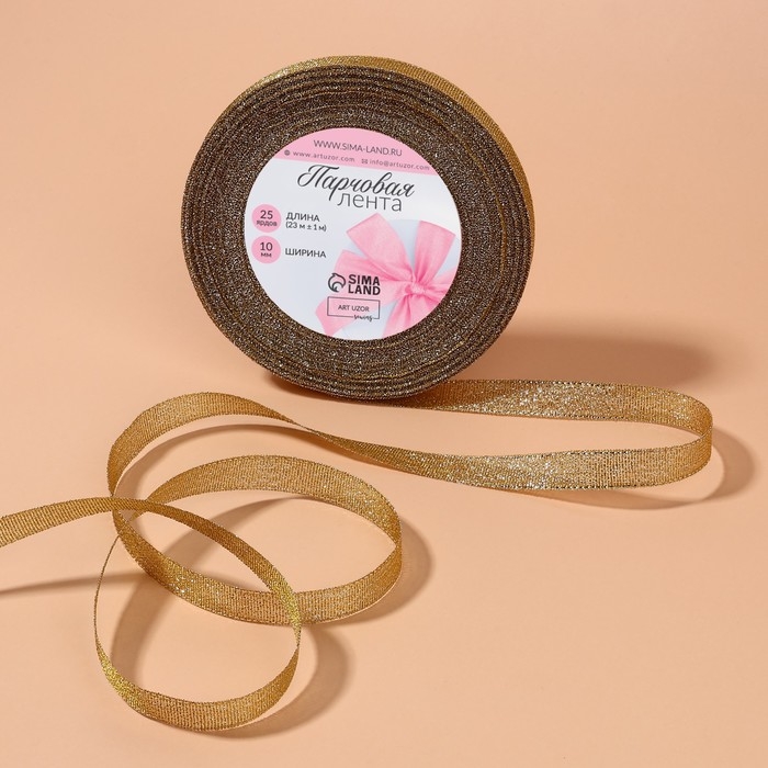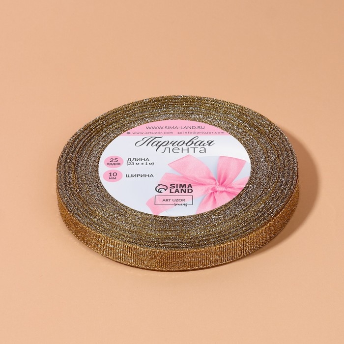 Лента парчовая, 10 мм, 23 ± 1 м, цвет бежевый №035