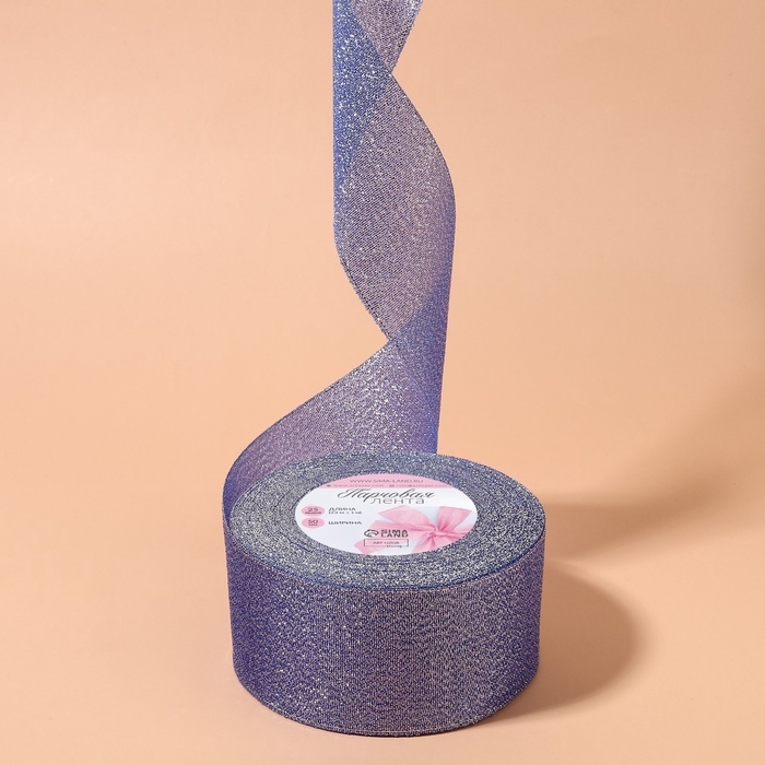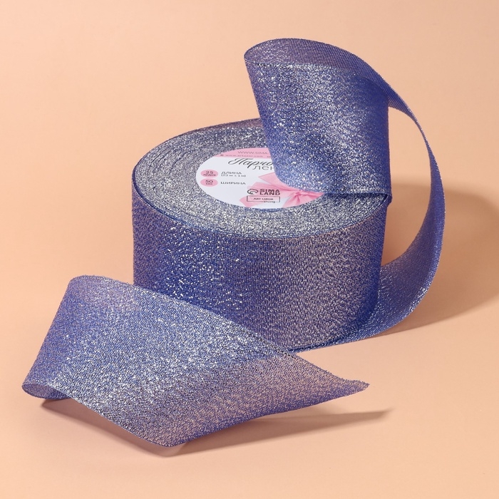 Лента парчовая, 50 мм, 23 ± 1 м, цвет синий №037