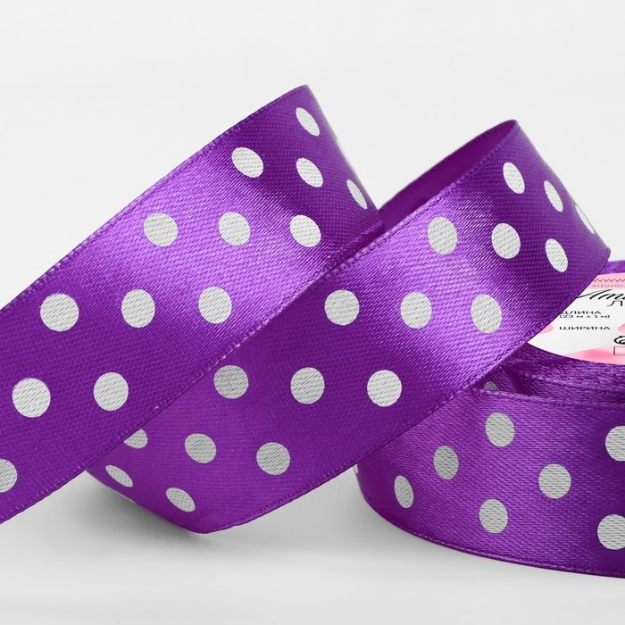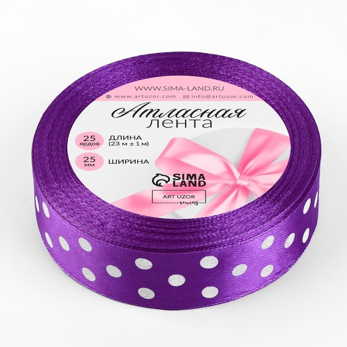 Лента атласная «Горох», 25 мм × 23 ± 1 м, цвет фиолетовый №154