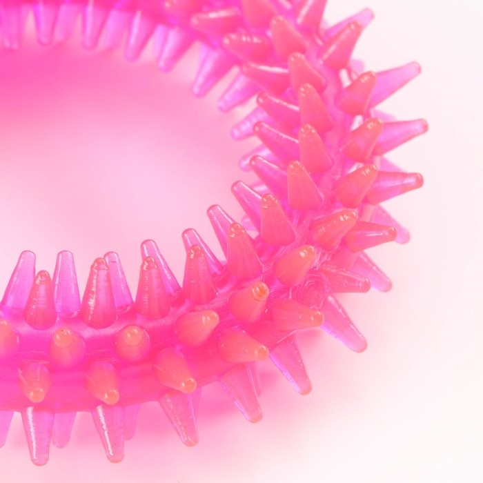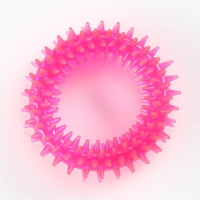 Игрушка жевательная для собак "Игольчатое кольцо", 9 см, розовая
