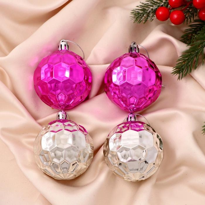 Набор шаров пластик d-6 см, 4 шт "Диско соты глубина" микс