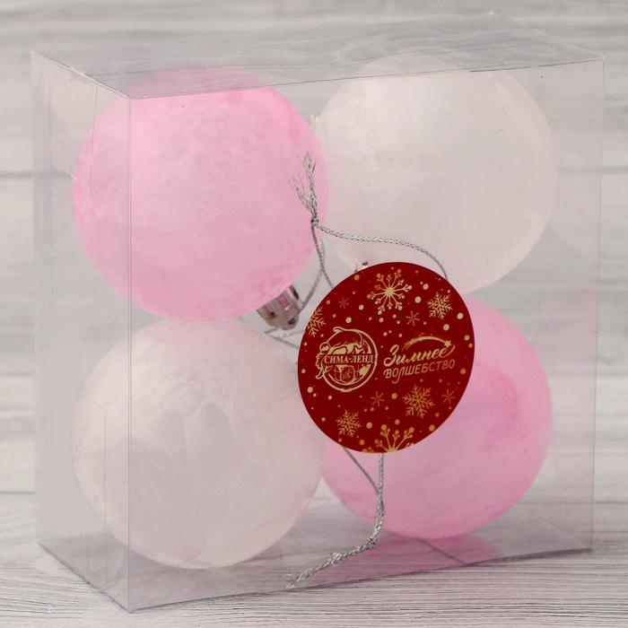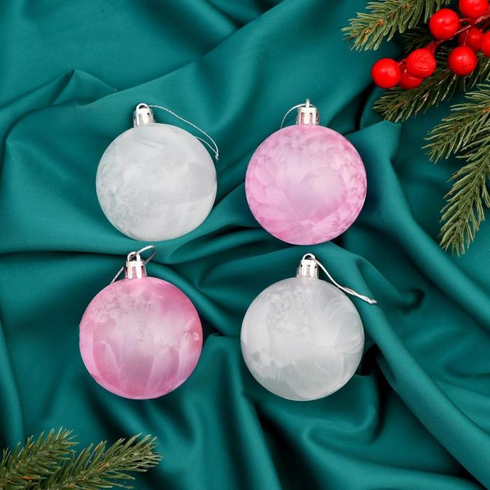 Набор шаров пластик d-6 см, 4 шт "Глэдис туман" бело-розовый