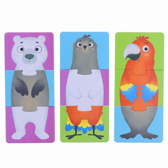 Пазлы 3 в 1 «Собирай и меняй: Животные», 9 пазлов, 27 деталей