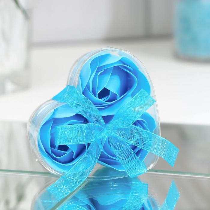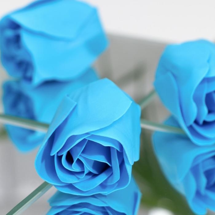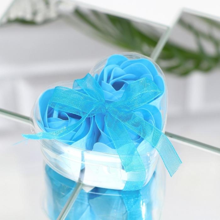 Букет из мыльных лепестков "Розы в подарочной коробке" голубой 7,5х13,8х20,5 см