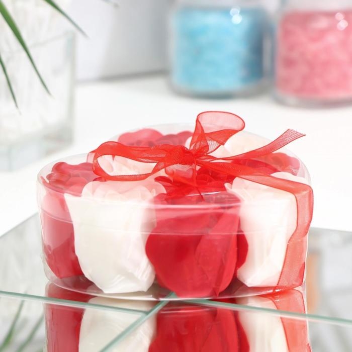 Набор мыльных роз в коробке 8 штук, розово-белые с зайчиком