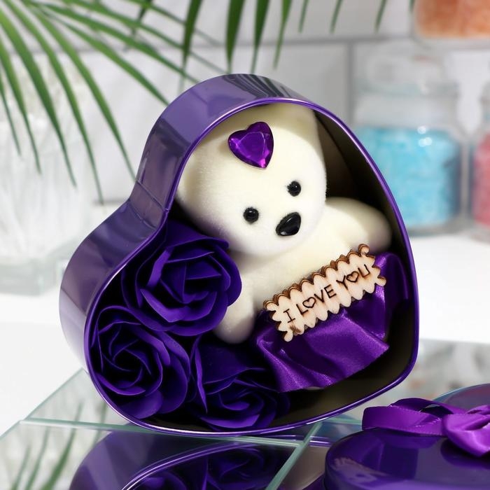 Букет из мыльных лепестков "Розы в подарочной коробке" голубой 7,5х13,8х20,5 см