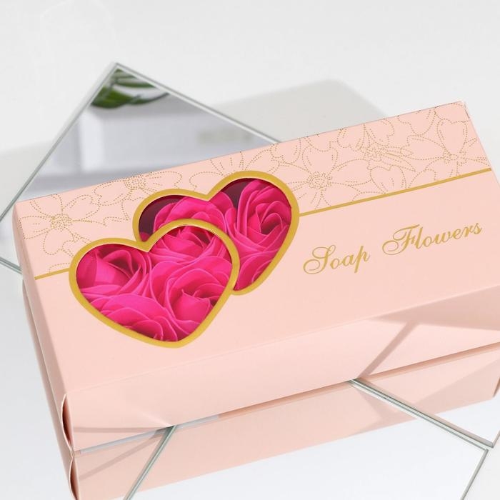 Набор мыльных роз в коробке 8 штук, розово-белые с зайчиком