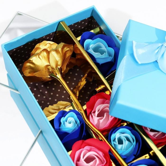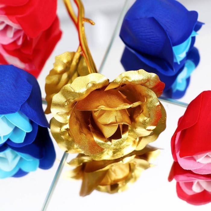 Мыльные розочки цветных оттенков и золотая роза, набор 11 шт