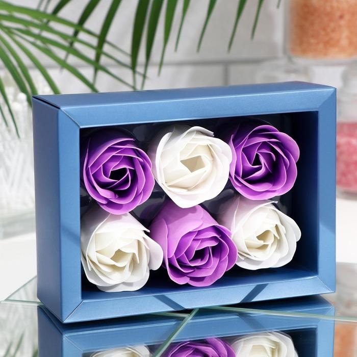 Мыльные розочки, белые и фиолетовые, набор 6 шт.