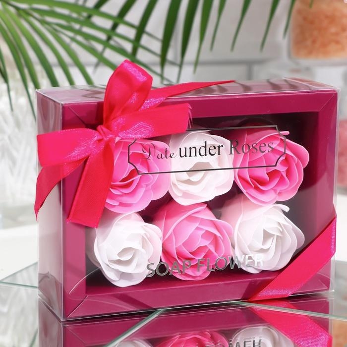 Мыльные розочки, белые и розовые, набор 6 шт.