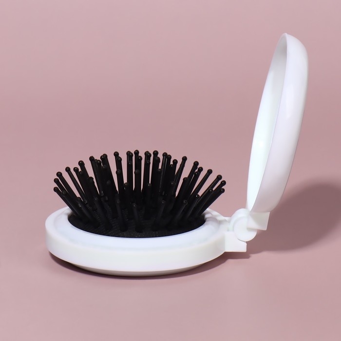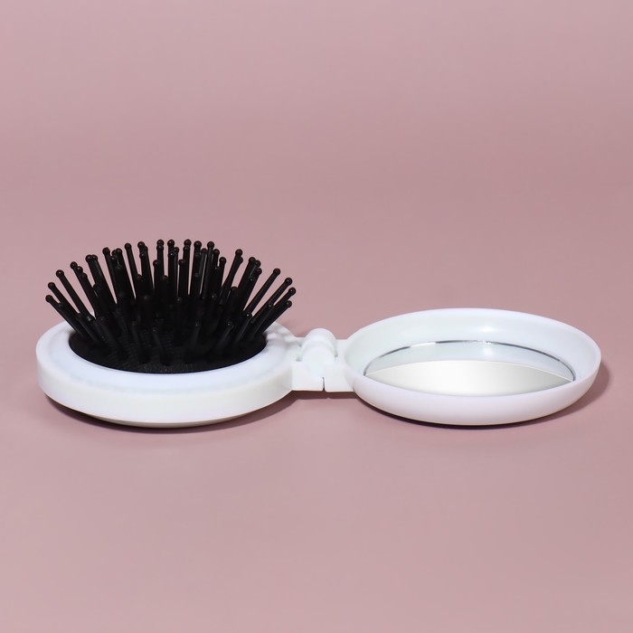 Расчёска массажная, складная, с зеркалом, d = 6 см, цвет МИКС