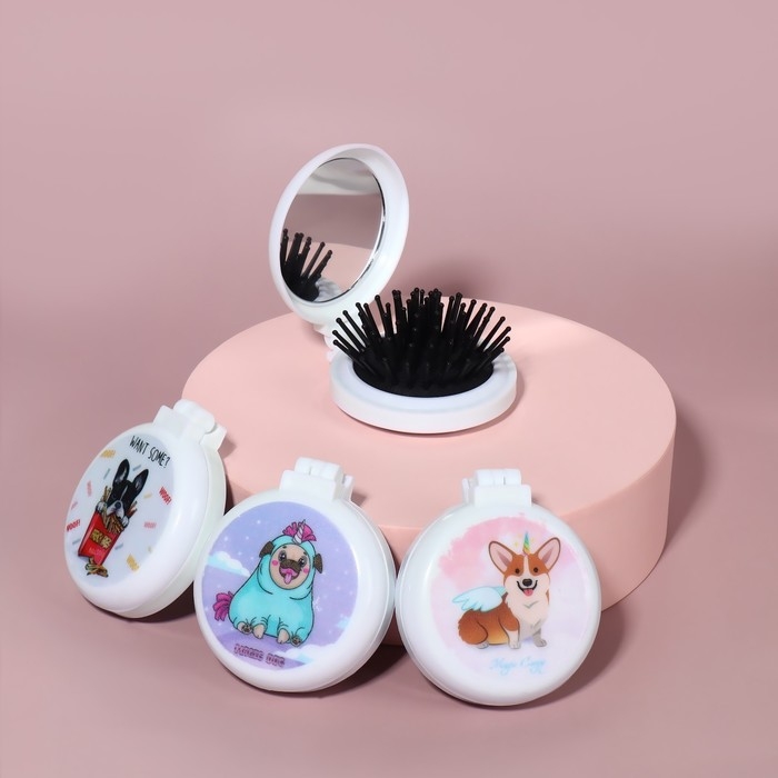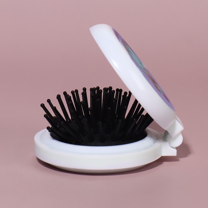 Расчёска массажная, складная, с зеркалом, d = 6,5 см, рисунок МИКС