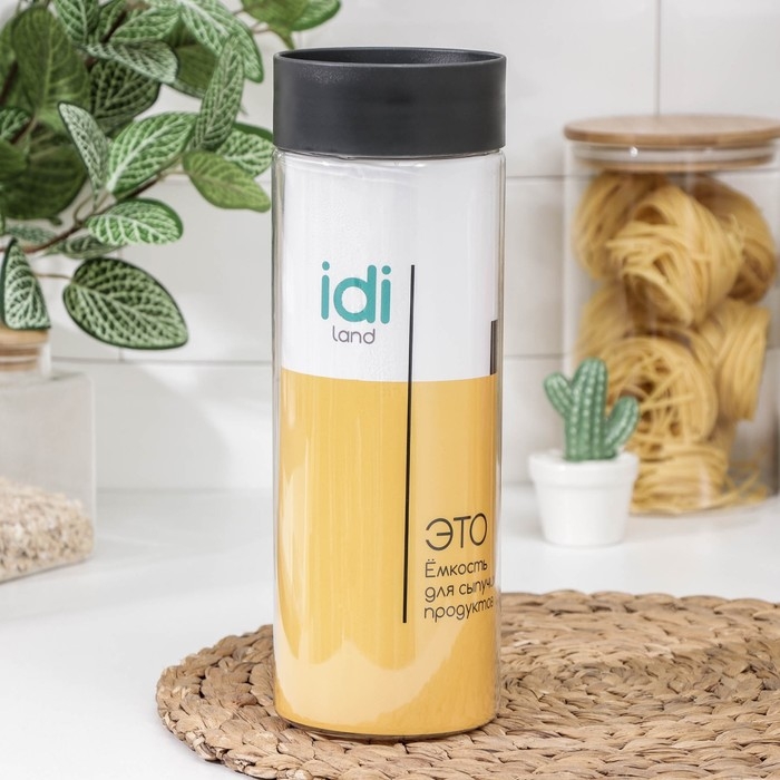 Банка для сыпучих продуктов изготовлена из пластика. Имеет плотно закрывающуюся крышку, которая защищает еду от влаги и посторонних запахов. В ёмкости удобно хранить крупы, специи, макаронные изделия, сахар, муку и бобовые.