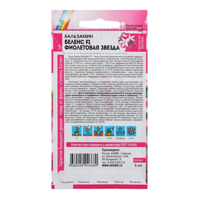 Семена цветов Бальзамин Беленс "Фиолетовая звезда", Сем. Алт, ц/п, 5 шт