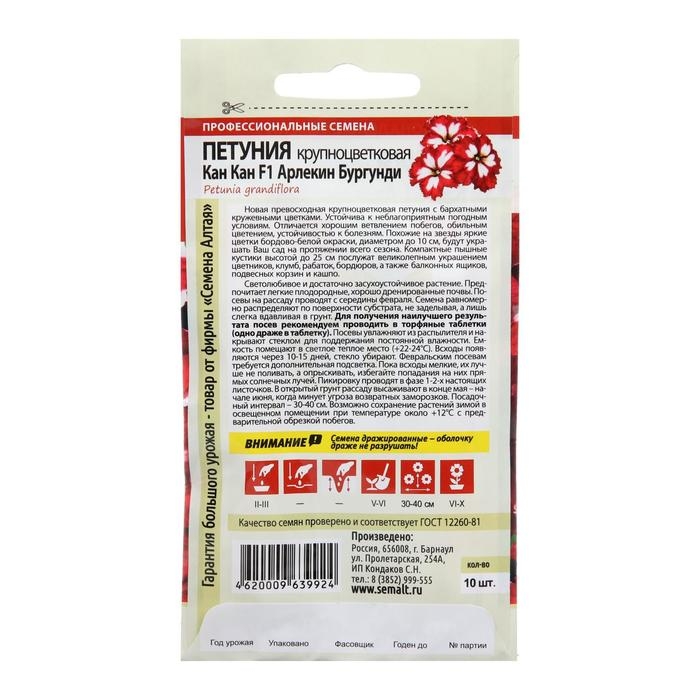 Семена цветов Петуния "Кан Кан Арлекин", бургунди, Сем. Алт, ц/п, 5 шт