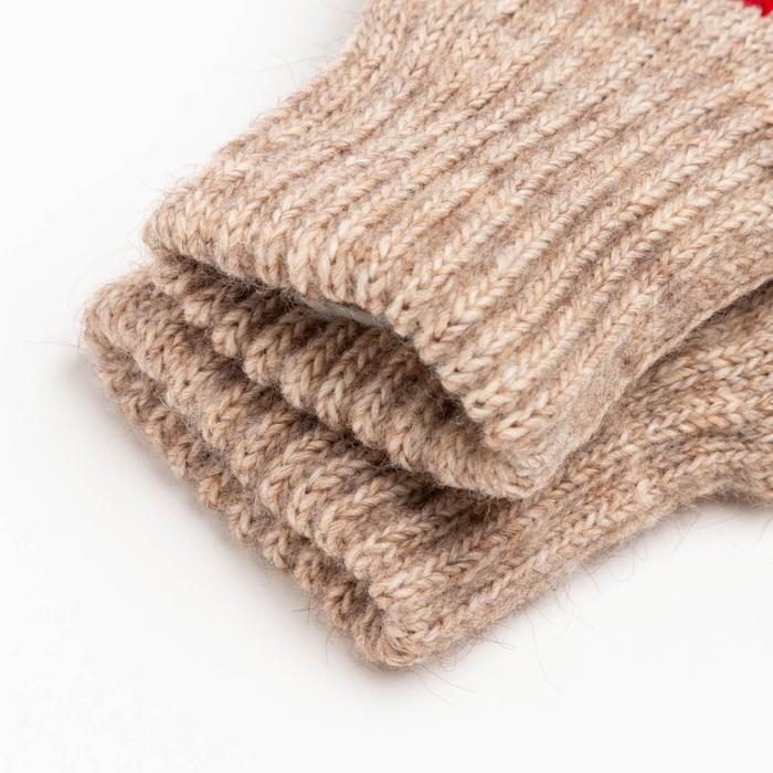 Новый год. Варежки двойные детские, цвет бежевый/пингвин, размер 16 (9-12 лет)