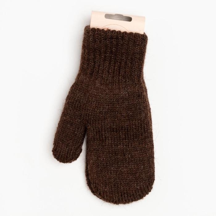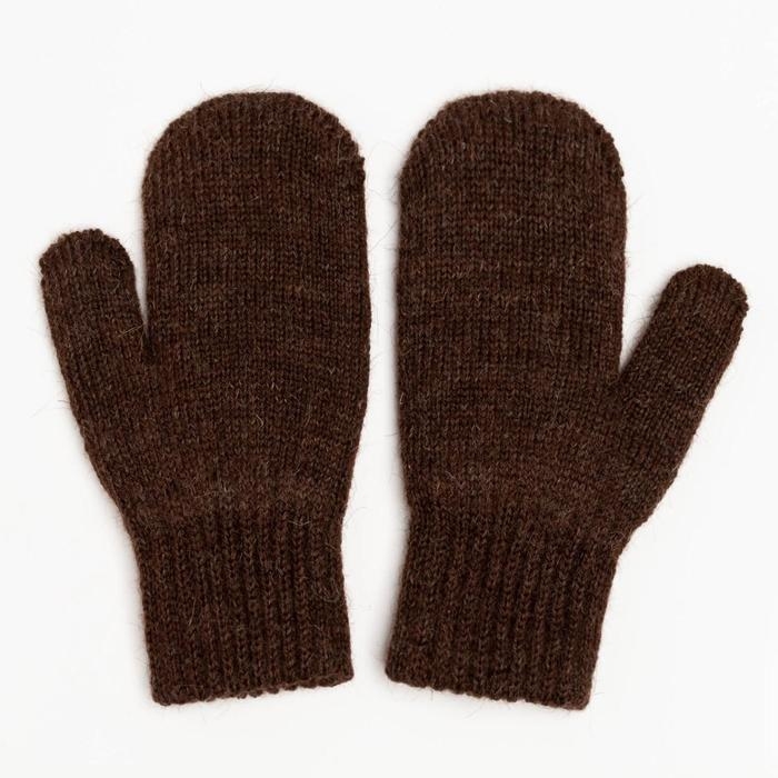 Варежки двойные детские, цвет тёмно-коричневый, размер 16 (9-12 лет)