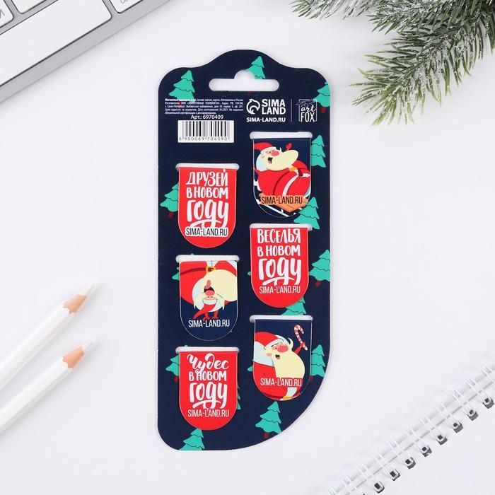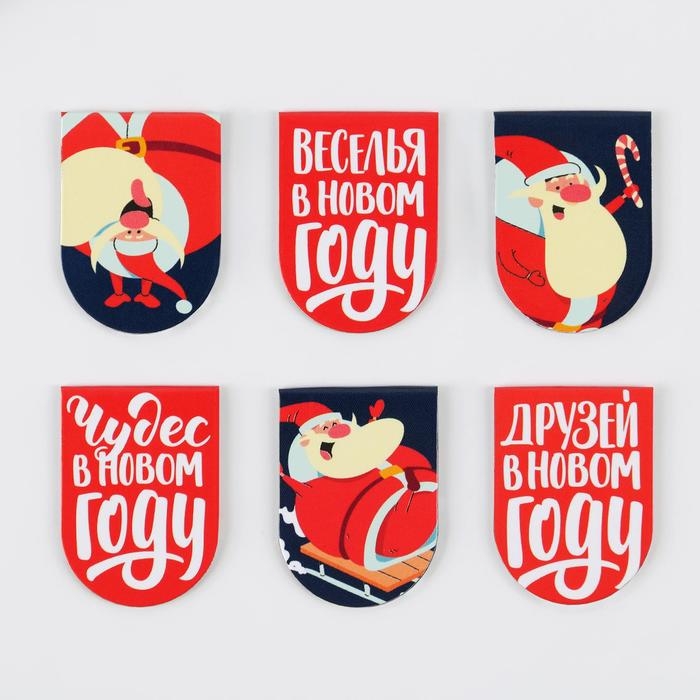Новый год. Закладки для книг магнитные на подложке «С Новым Годом», 6 шт