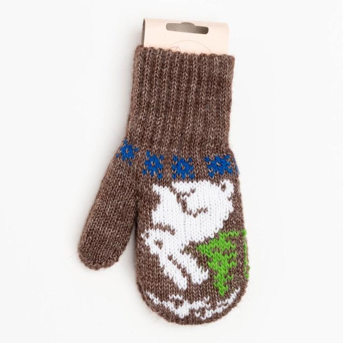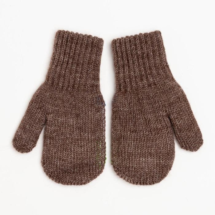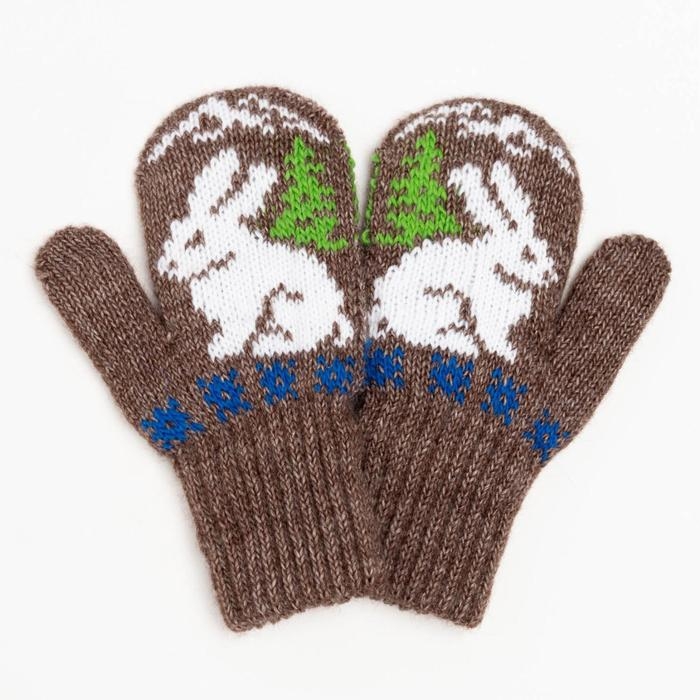 Новый год. Варежки двойные детские, цвет тёмно-коричневый, размер 12 (3-6 лет)