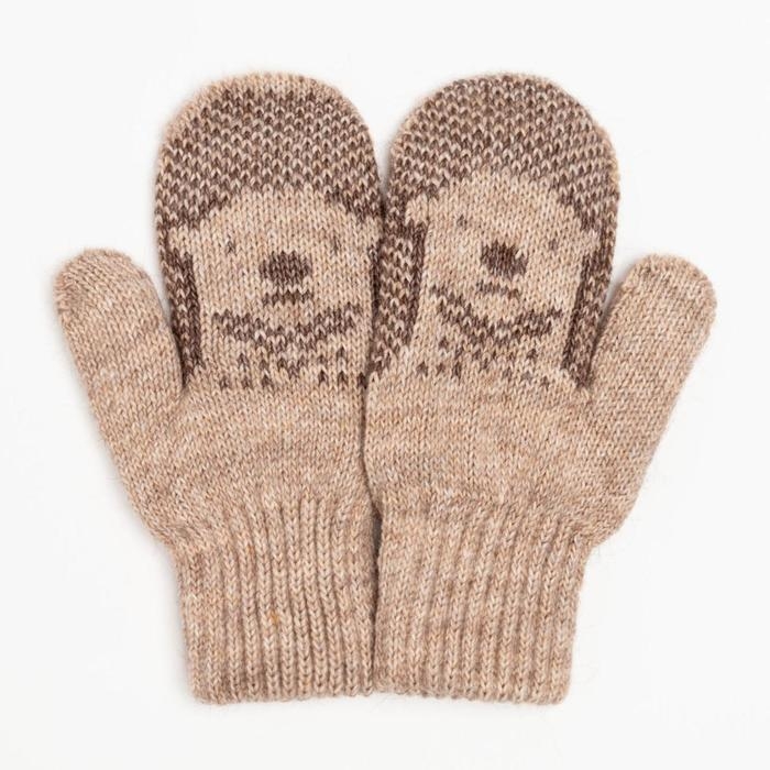 Варежки двойные детские, цвет бежевый, размер 14 (6-9 лет)