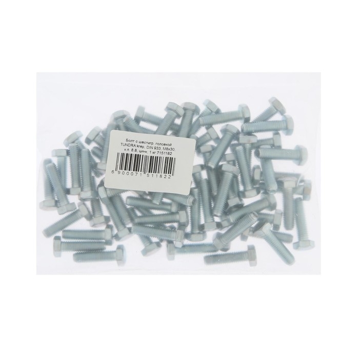 Болт ТУНДРА, оцинкованный, DIN 933, класс прочности 8.8, М8х30 мм, 1 кг
