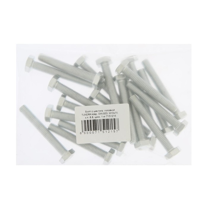 Болт ТУНДРА, оцинкованный, DIN 933, класс прочности 8.8, М10х70 мм, 1 кг