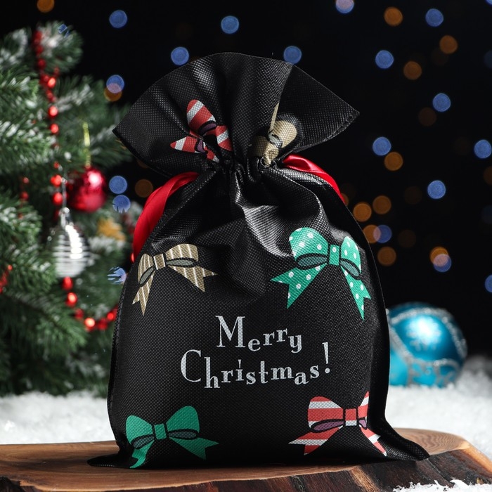 Новый год. Мешок подарочный "Новогодние банты", 22 x 31 см