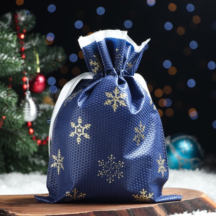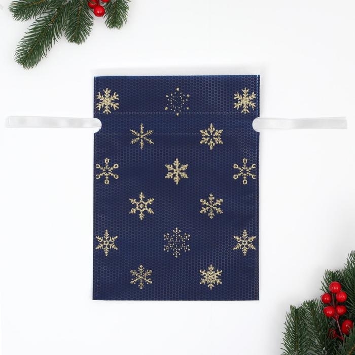 Новый год. Мешок подарочный "Золотые снежинки", 22 x 31 см