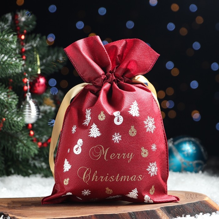 Новый год! Мешок подарочный «Снеговики с ёлками», р. 25 × 32 см, органза
