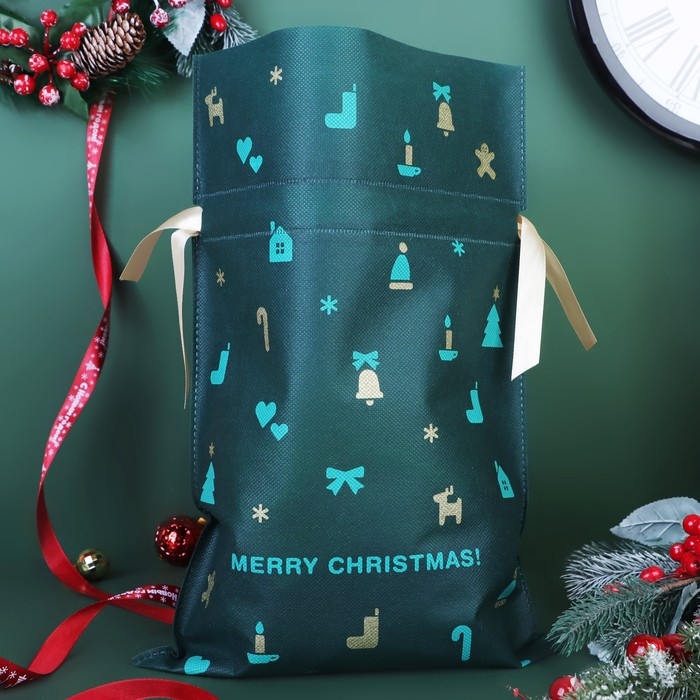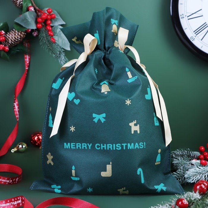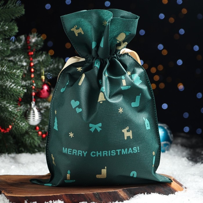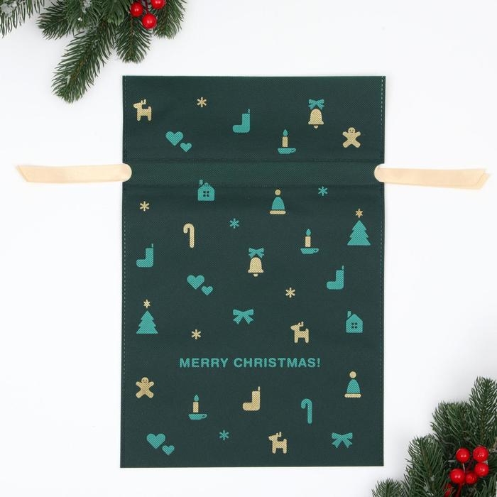 Новый год. Мешок подарочный "Рождественские мелочи" зелёный, 27 x 40 см
