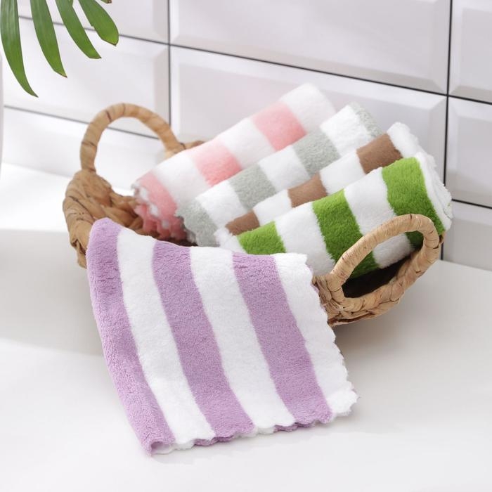 Салфетка для уборки Доляна «Полоски», микрофибра махровая, 30×30 см, цвет МИКС