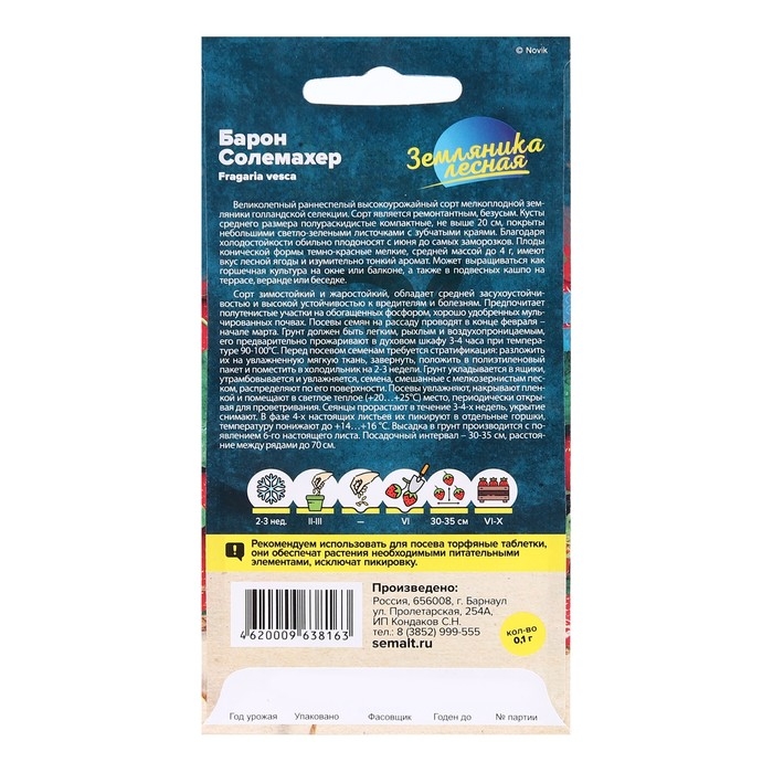 Семена Земляника "Барон Солемахер", ремонтантная, Сем. Алт, ц/п, 0,1 г