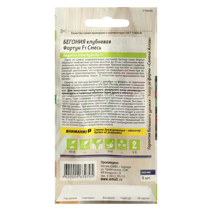 Семена цветов Бегония "Фортун", смесь, клубневая, Сем. Алт, ц/п, 4 шт