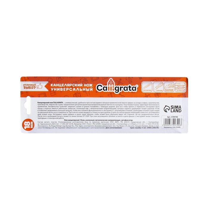 Нож канцелярский 18мм, металлический, Zinc-alloy, TOP