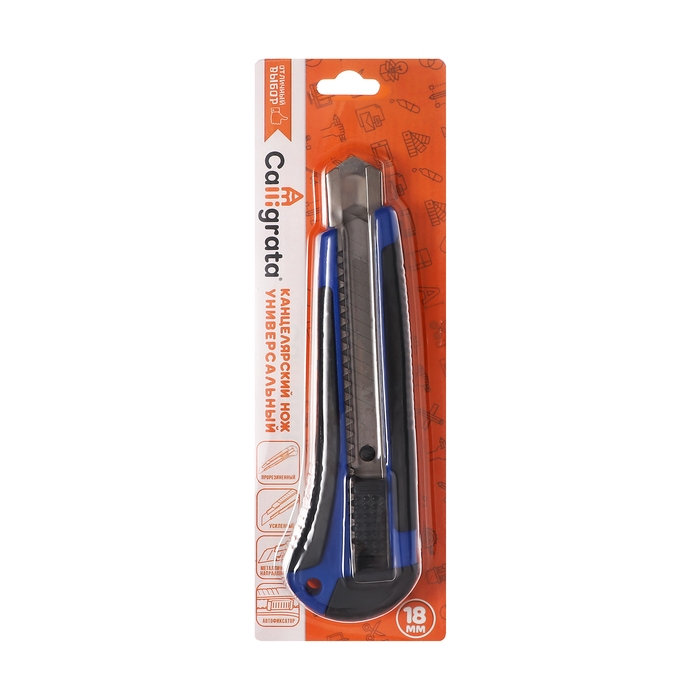 Нож канцелярский 18 мм, пластиковый, автофиксатор, резиновые вставки, TOP