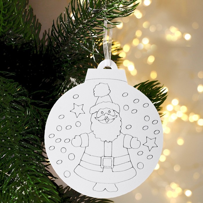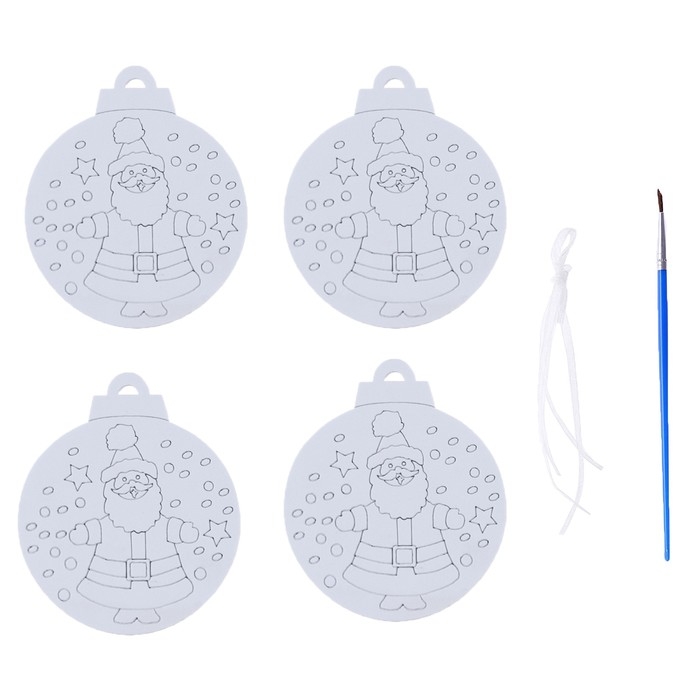Ёлочное украшение под раскраску «Санта» 4 шт., кисть