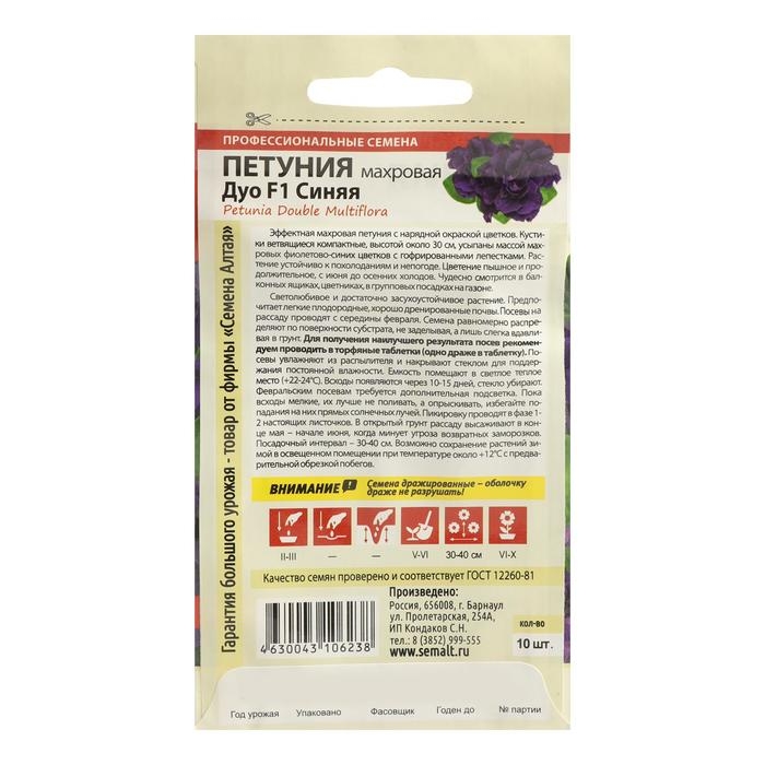 Семена цветов Петуния Синяя, махровая Дуо, F1, Сем. Алт, ц/п, 10 шт