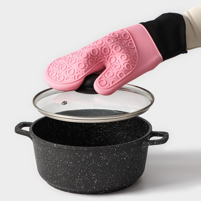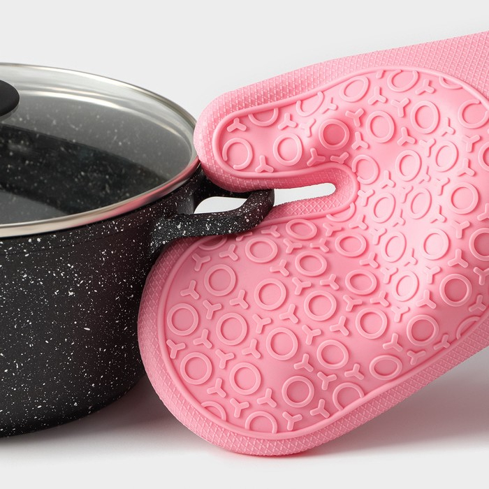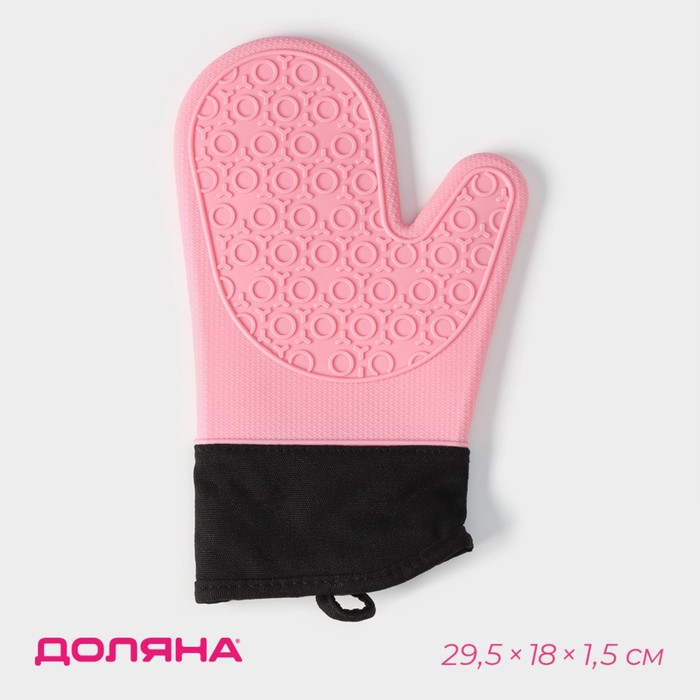 Рукавица для горячего Доляна «Ребрис», силикон, 22×17 см, цвет розовый