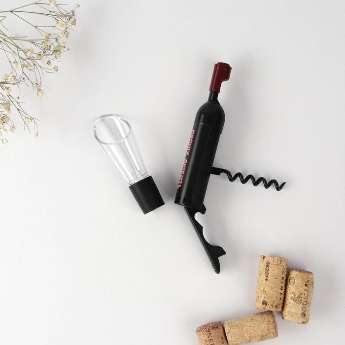 Штопор полезное и удобное приспособление для быта и просто необходимый предмет. Штопор имеет два рычага с помощью которых вы легко сможете вытащить пробку из бутылки. Пробка для бутылки используется для плотного закрытия горлышка. Данный набор станет отличным подарком на любой праздник.
