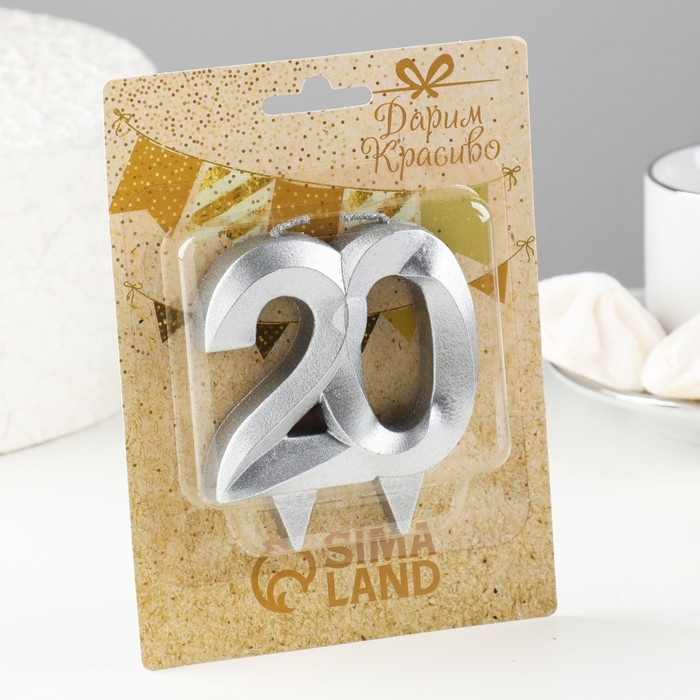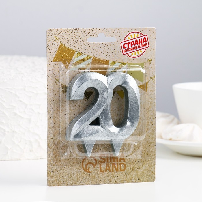 Свеча в торт юбилейная "Грань", цифра 20, серебро