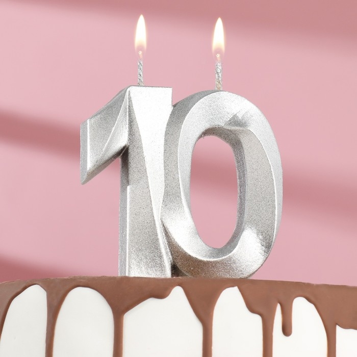 Свеча в торт юбилейная "Грань", цифра 10, серебро