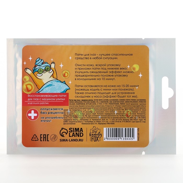 Патчи для области вокруг глаз «Релакс Тайм», 1 пара, гидрогелевые с экстрактом алоэ, BEAUTY FOX