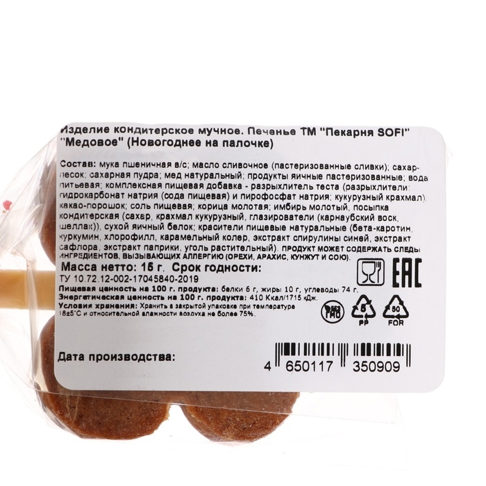 Новый год. Печенье на палочке медовое "Новогоднее", 15 г