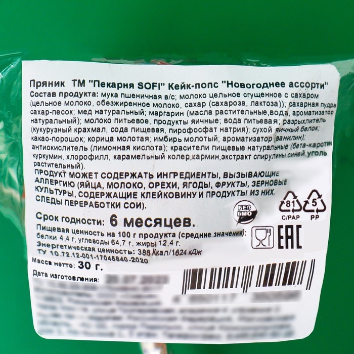 Новый год. Кейк-попсы "Новогоднее ассорти", МИКС, 30 г