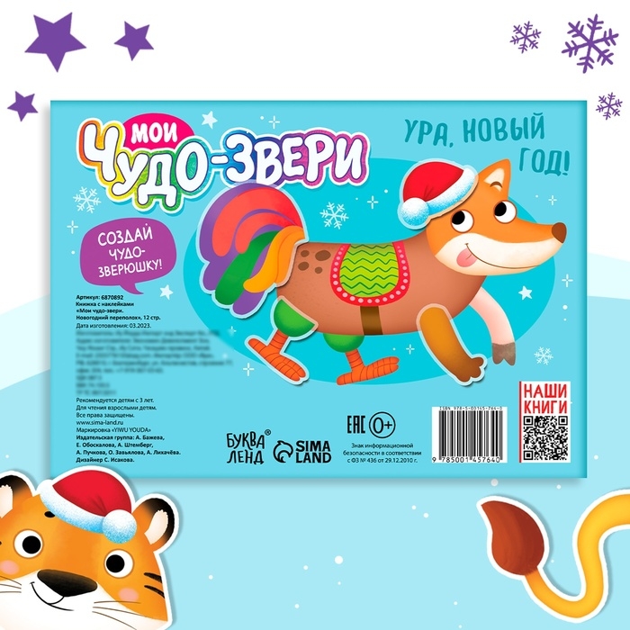 Книжка с наклейками «Мои чудо-звери. Новогодний переполох», 12 стр.